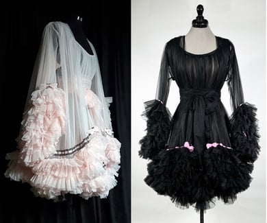 Baby Doll Nightie and Robe Set, Nylon Chiffon, Black and Pink