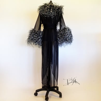 Black/White Ostrich "Cassie" Sheer Dressing Gown (Last one!)