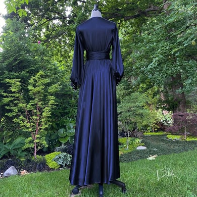 Midnight Blue "Beverly" Dressing Gown w/ Crystal Button Cuffs PRE-ORDER FOR NOVEMBER