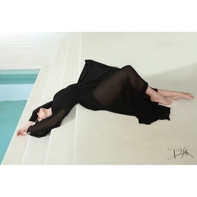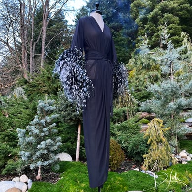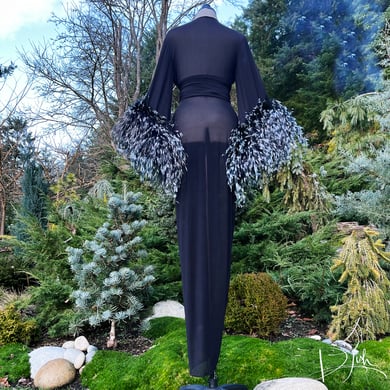 Black Sheer "Selene" Black/White Ostrich Dressing Gown