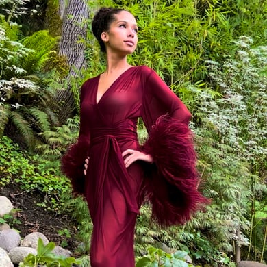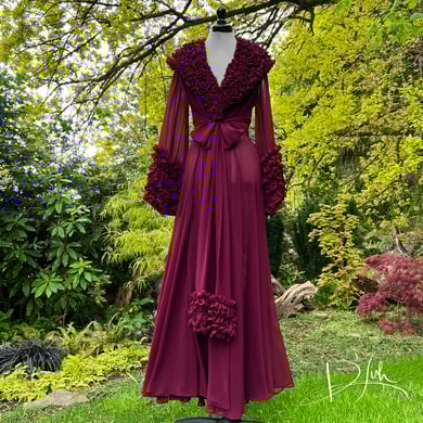 Deep Wine Sheer Selene Ostrich Dressing Gown PRE-ORDER FOR NOVEMBER