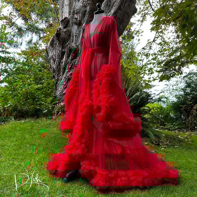 Wine Sheer Ruffled "Dominique" Dressing Gown
