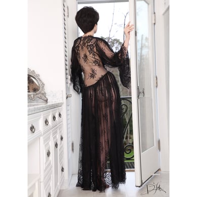 "Elisabeth" Sheer Dressing Gown w/ Lace, Black